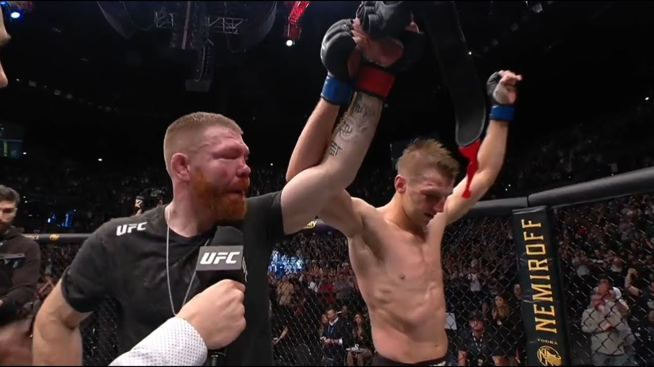 Jimmy Crute meets with Dan Hardy in the Octagon moments after a submission victory over Michał Oleksiejczuk at UFC Auckland. Subscribe