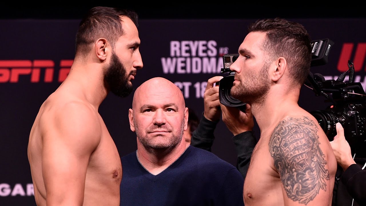 Veja como foi a encarada da luta principal do #UFC Boston, entre Dominick Reyes e Chris Weidman. Evento acontece nesta sexta-feira (18), com transmissão Ao Vivo do Canal Combate, a partir das 18h45.